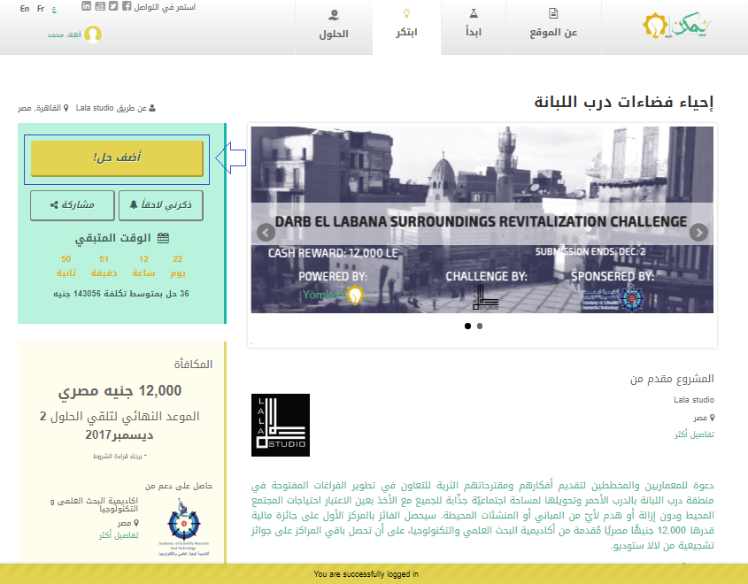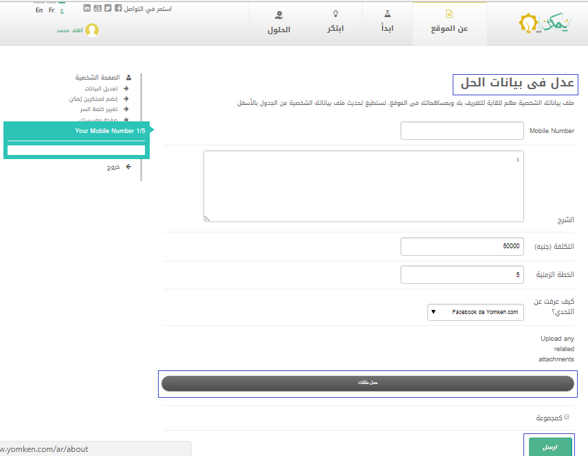 3- بعد تسجيل الحساب، بمقدورك التقدم لإرسال الحل ، بالضغط على "أضف حل":