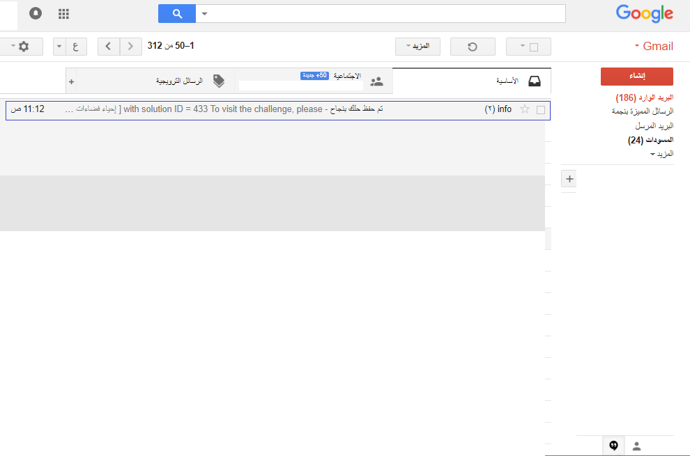 6- بمراجعة بريدك الإلكتروني المسجل به ، ستجد في صندوق الرسائل رسالة به البيانات الخاصة بك ، وبالضغط عليها: