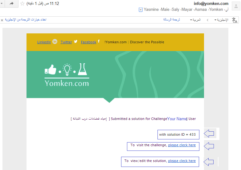 7- سيظهر رقمك التسلسلي الخاص بالحل، ورابط التحدي، ورابط التعديل على البيانات الخاصة بك وبفريقك.