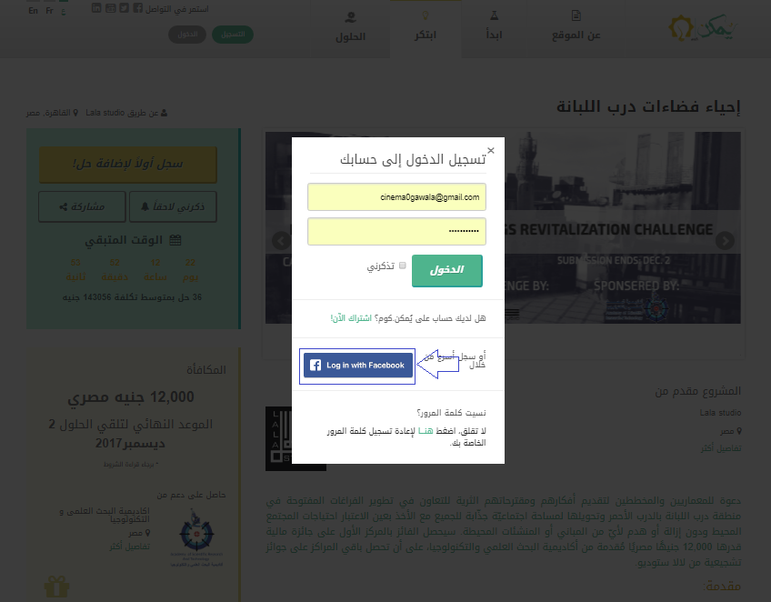 2- ثم تسجيل الدخول أو الدخول بشكل أسرع عبر الربط بحسابك على الفيسبوك.